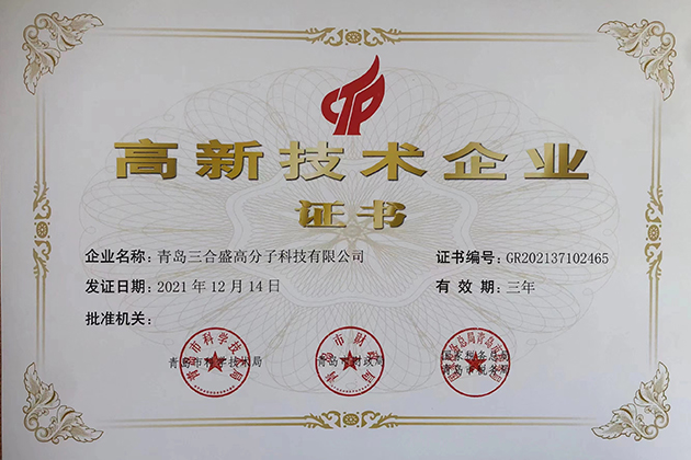 2021年12月14日,由国家税务总局、青岛市税务局、青岛市科技局、青岛市财政局联合颁发的的高新技术企业认证名单正式公布,青岛糖心VLOG官网下载高分子科技有限公司(以下简称青岛糖心VLOG官网下载)顺利通过高新技术企业认证,这标志着青岛糖心VLOG官网下载在创新管理、人员梯队、科技研发以及科技成果转化、产业化等方面又迈上了一个新的台阶!